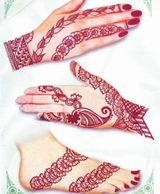 The paste is applied to the skin in a freehand drawing fashion. After 15 to 20 minutes it flakes and falls off leaving the tattoo on your skin. Let the dried paste fall off on it's own. Henna paste is a dye and the longer it is left on the skin, the more layers of skin become stained by it. The design will darken over the first 24 hours to its natural reddish brown color. Reacting with the pigments in various skin types, it will turn more brown on lighter skin and more red on darker skin. The tattoo will remain until all the stained layers of skin naturally exfoliate.